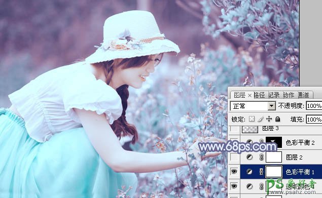 photoshop调出MM外景艺术照唯美的淡青色调