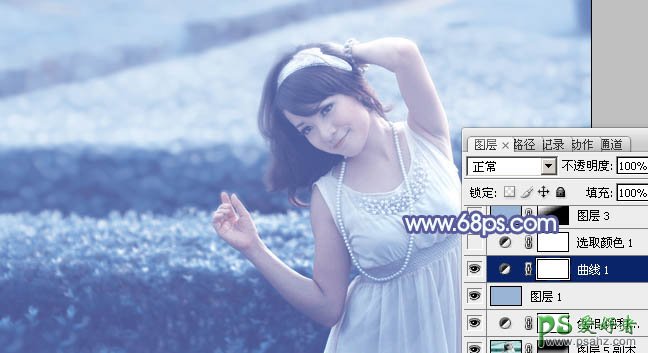PS美女照片调色实例教程,photoshop调出淡淡的蓝色梦幻美女人像,淡蓝色图片调色也有捷径,可以用通道替换得到青红色图片,然后把青红色转为蓝色就可以得到蓝色图片。后期再把图片颜色调淡,局部增加一些青色等即可。 最终效果 原图 1、打开