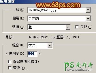 8、新建一个图层,按Ctrl + Alt + Shift + E盖印图层,执行:图像 > 应用图像,参数设置如图18,效果如图19。
