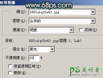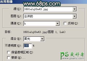 1、打开原图素材,选择菜单:图像 > 模式 > Lab颜色,确定后按Ctrl + J把背景图层复制一层,执行:图像 > 应用图像,参数设置如图1,确定后再选择菜单:图像 > 应用图像,参数设置如图2,确定后选择菜单:图像 > 模式 > RGB颜色,选择不合拼,效果如图3。