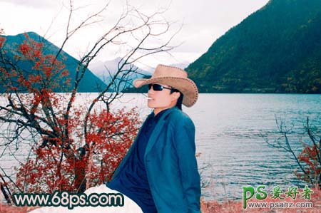 PS人物照处调色实例教程,PS给江边帅男照片调出水墨画艺术色彩,原图素材颜色基本上都比较接近,调色的时候可以适当的把色差调大,方法有很多最好是在不同的模式下用通道来调,这样比较快,然后再根据整体来调色。 最终效果 原图 1、打开原图素材,