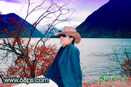 PS给江边帅男照片调出水墨画艺术色彩