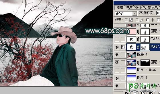 PS给江边帅男照片调出水墨画艺术色彩