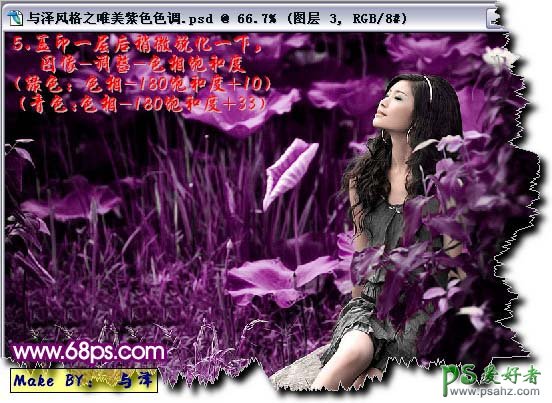 5、新建一个图层,盖印图层,适当的用Topaz滤镜锐化一下,再按Ctrl + U调整色相/饱和度,参数设置:绿色:色相:-180,饱和度:+10;青色:色相:-180,饱和度:+33。