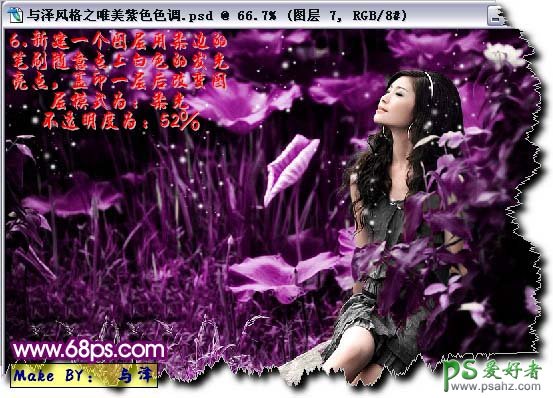 6、新建一个图层,用柔边的笔刷随意点上白色的点。