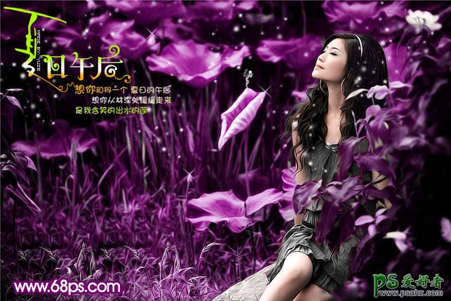 PS调出夏日午后性感的美少妇紫色艺术效果