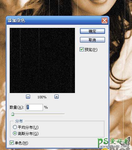 7、执行:滤镜 > 杂色 > 添加杂色,参数设置如下图。