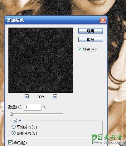 9、执行:滤镜 > 杂色 > 添加杂色,参数设置如下图。