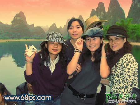 PS照片调色实例教程,photoshop给一张合影照片调出晚霞色彩。本教程简单介绍霞光效果的调色方法。制作的时候基本上是用色彩叠加来实现颜色的转换,局部也需要用色彩叠加来调色。 最终效果 原图 1、打开原图素材,再打开图1所示的云彩图片,