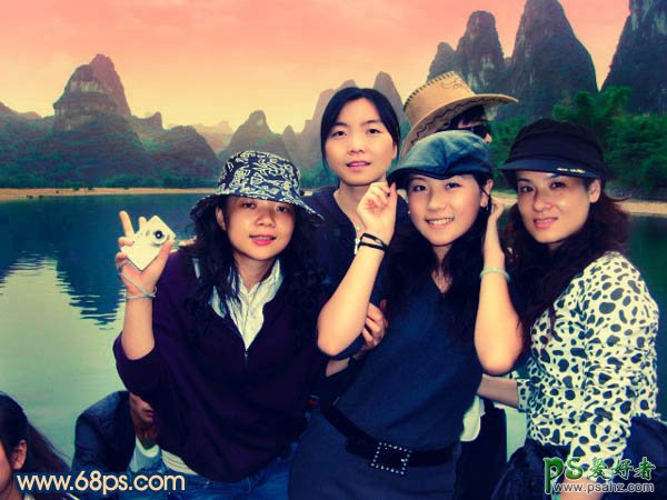 photoshop给一张合影照片调出晚霞色彩