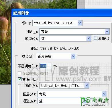 1、打开原图素材,执行:图像 > 应用图像,参数设置如下图,目的压暗。
