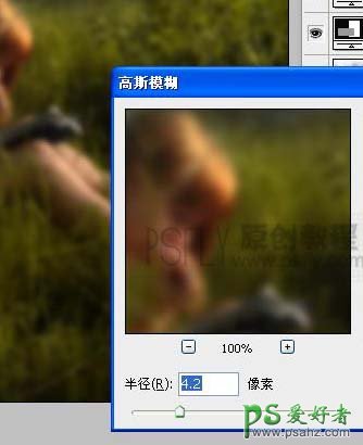 7、新建一个图层,盖印图层,执行:滤镜 > 模糊 > 高斯模糊,数值为4.2确定后把图层不透明度改为:25%,加上图层蒙版用黑色画笔把人物部分擦出来。