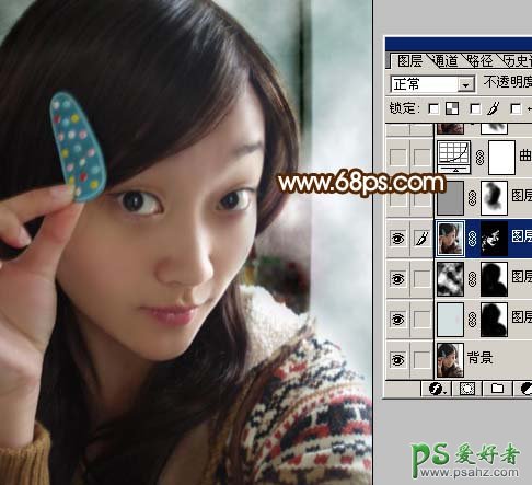 3、新建一个图层,按Ctrl + Alt + Shift + E盖印图层,执行:滤镜 > 模糊 > 高斯模糊,数值为4,确定按住Alt键加上图层蒙版,然后把前景颜色设置为白色,选择画笔工具在人物脸上有杂色的地方涂抹,给人物磨皮。