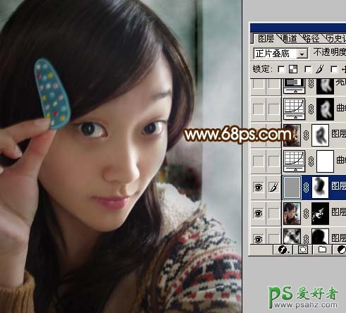 4、新建一个图层,填充颜色:#989898,然后把图层混合陌生感改为“正片叠底”,图层不透明度改为:40%,加上图层蒙版用黑色画笔把人物脸部位置稍微擦一下,效果如图5。