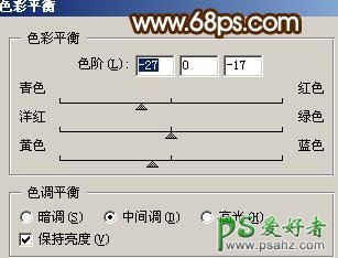 13、创建色彩平衡调整图层,参数设置如图20,确定后盖印图层,整体修饰下细节,完成最终效果。