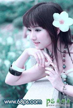 PS美女照片调色实例教程,美女艺术照调色,photoshop调出甜美MM生活照漂亮的青色调,本教程介绍人物简单润色方法。Lab模式下通道较少调色非常方便,尤其是曲线调色的时候只要稍微调动下,颜色就千变万化,非常适合调色。 最终效果 原图