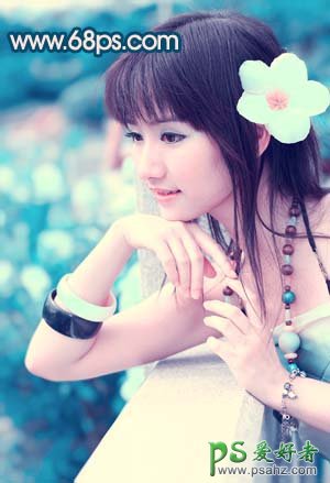 PS美女照片调色实例教程,美女艺术照调色,photoshop调出甜美MM生活照漂亮的青色调,本教程介绍人物简单润色方法。Lab模式下通道较少调色非常方便,尤其是曲线调色的时候只要稍微调动下,颜色就千变万化,非常适合调色。 最终效果 原图