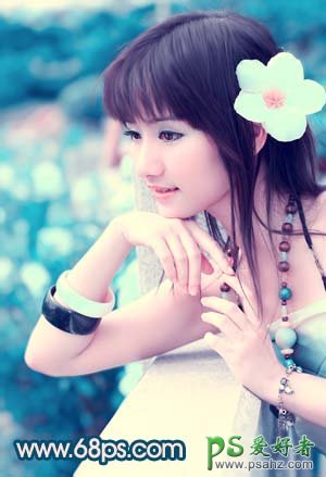 PS美女照片调色实例教程,美女艺术照调色,photoshop调出甜美MM生活照漂亮的青色调,本教程介绍人物简单润色方法。Lab模式下通道较少调色非常方便,尤其是曲线调色的时候只要稍微调动下,颜色就千变万化,非常适合调色。 最终效果 原图