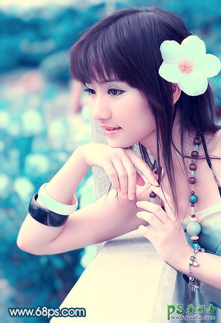 PS美女照片调色实例教程,美女艺术照调色,photoshop调出甜美MM生活照漂亮的青色调,本教程介绍人物简单润色方法。Lab模式下通道较少调色非常方便,尤其是曲线调色的时候只要稍微调动下,颜色就千变万化,非常适合调色。