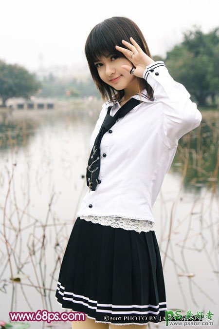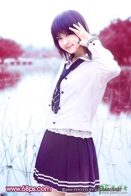 PS美女照片调色教程实例,photoshop调出学生装清纯少女漂亮的紫红色。人物调色的时如果整体调色的时候,画面颜色非常好看,不过人物部分或部分细节出现失真。这时需要用图层蒙版来修整失真部分,让画面更完美。