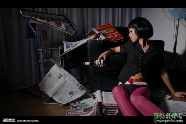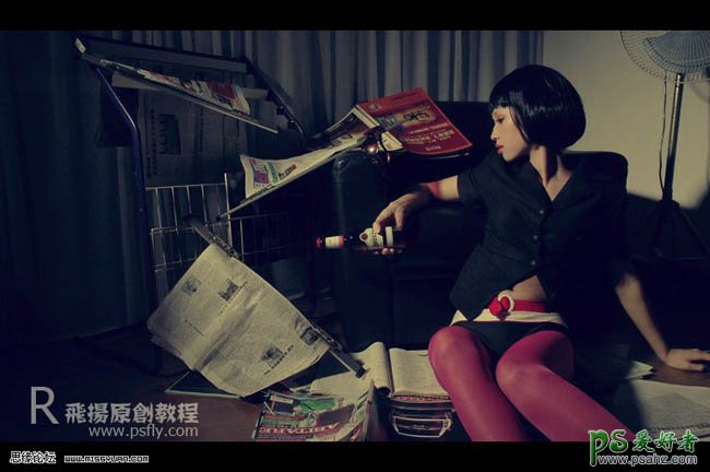 PS给室内红丝袜美女艺术照调出怀旧色彩