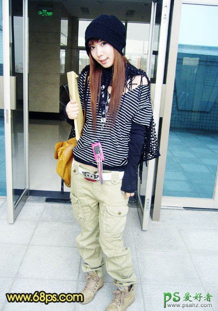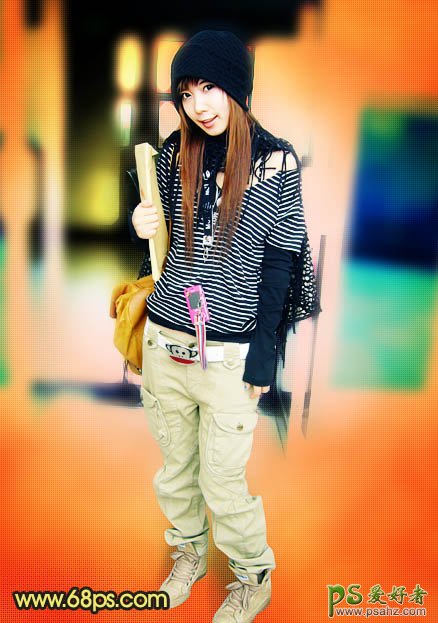 PS美女照片调色教程实例,photoshop给时尚个性的女孩儿调出艳丽的橙红色。本教程主要是介绍背景部分调色方法。原图素材背景比较杂乱,色调不是很统一。处理的时候利用渐变色叠加实现色彩转换,然后适当模糊处理,再把人物抠出来单独处理即可。