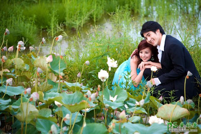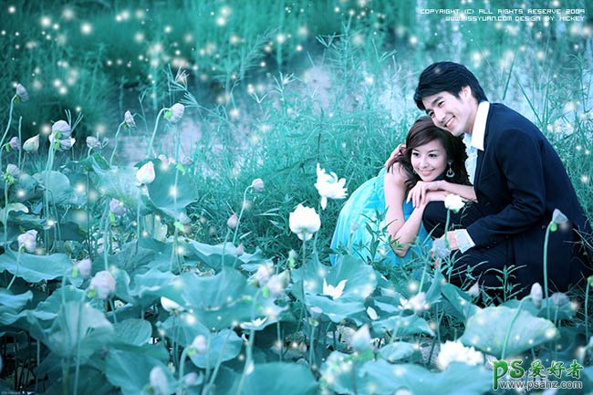 photoshop调出恩爱情侣婚纱照梦幻青蓝色
