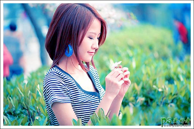 PS人物照片调色教程实例,PS给美少妇生活照调出幸福的淡蓝色彩。本教程介绍人物图片的一些基础调色方法。调色有时候不能一步到位,需要把照片的各部分分开来调,先调好局部,然后再整体调色。颜色可以根据个人喜好调成不同色彩。