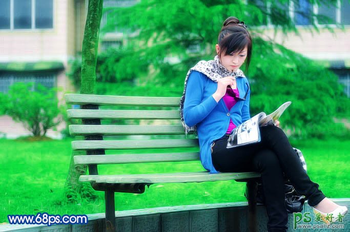 PS美少女照片调色教程,清纯少女艺术照制作,PS给纯洁绝美的少女生活照调出清爽的绿色调。教程的原图有点偏色,人物及背景较暗。整体像素不是很好。调色的时候尽量把背景及人物色调区分开来,这样可以适当突出人物。