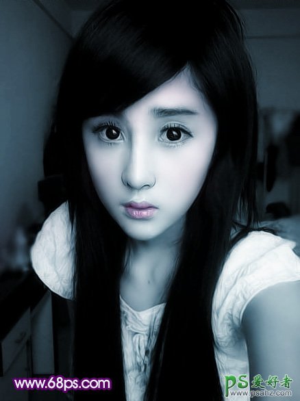 PS美女照片调色教程实例,PS给漂亮的瓜子脸清纯少女调出个性时尚的冷色调。本教程介绍单一色调照片调色方法。方法:简单的利用色相/饱和度可以一步调出自己喜欢的单色调。然后对人物五官进行细化处理,加强一下面板的质感。整个的制作过程都非常简单。