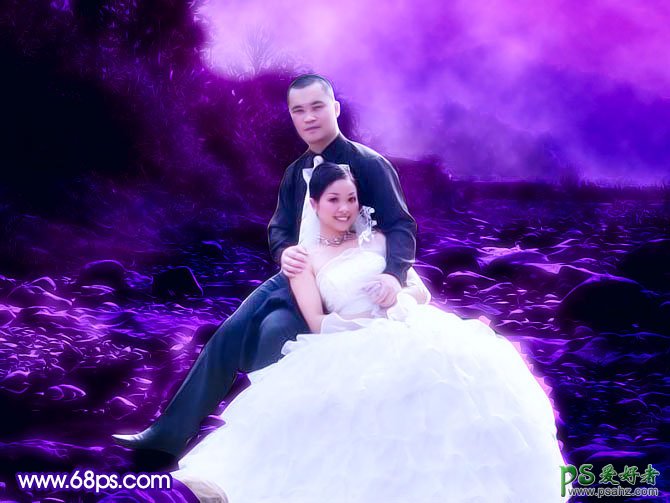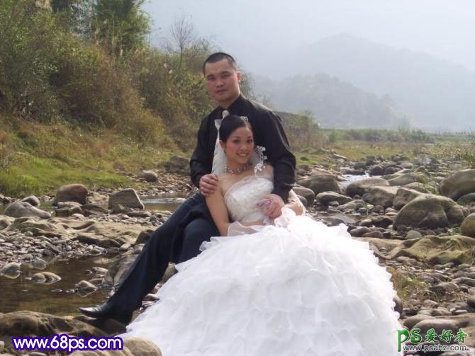 今天我们来学习一篇PS婚片调色教程实例,PS给室外情侣婚纱照调出蓝色梦幻效果,原图素材整体有点偏暗,像素不是很好。不过人物拍摄的非常自然。调色的时候可以根据需要适当把人物部分调亮一点,再把背景调成自己喜欢的颜色即可。