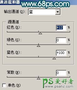 混合器调整图层,对蓝色进行调整,参数设置如图15,效果如图16。