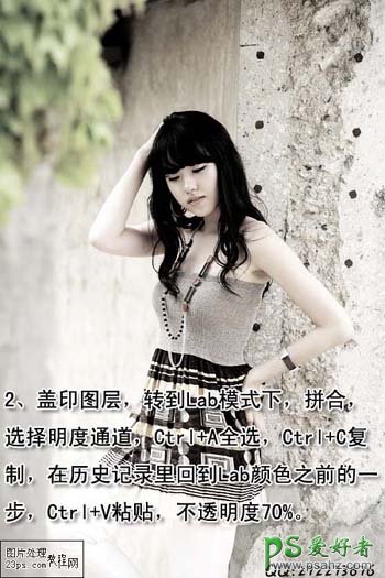 2、盖印图层(Ctrl + Alt + Shift + E ),转到Lab模式下(图像 > 模式 > Lab颜色),选择拼合,点通道面板,选择明度通道,Ctrl+A全选,Ctrl+C复制,在历史记录里回到Lab颜色之前的一步即盖印图层那一步,回到图层面板,新建一个图层按Ctrl+V粘贴,然后把图层不透明度改为70%,效果如下图。