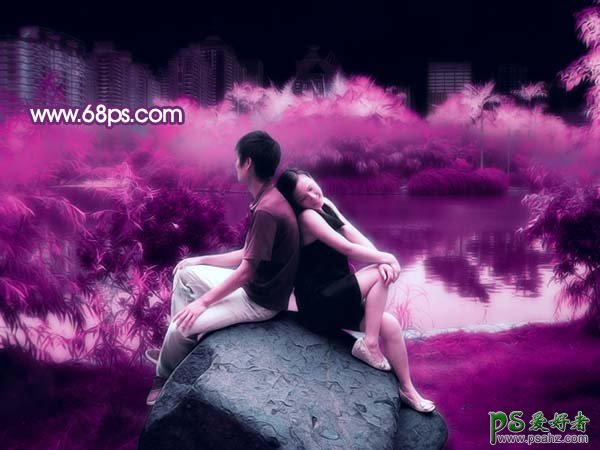 今天我们一起来学习一篇漂亮的PS情侣照片调色实例教程,photoshop调出梦幻绚紫风格情侣艺术照,本教程色调以紫色为主。原图素材较为明亮,不过经过反相处理后,效果就非常接近夜景照片。只是图片的局部有反白效果。需要慢慢去修复。 最终效果 原