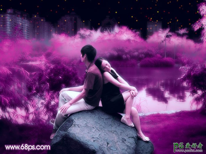 今天我们一起来学习一篇漂亮的PS情侣照片调色实例教程,photoshop调出梦幻绚紫风格情侣艺术照,本教程色调以紫色为主。原图素材较为明亮,不过经过反相处理后,效果就非常接近夜景照片。只是图片的局部有反白效果。需要慢慢去修复。