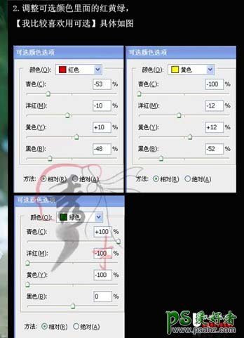 2、选择菜单:图层 > 新建调整图层 > 可选颜色,参数设置如下图。