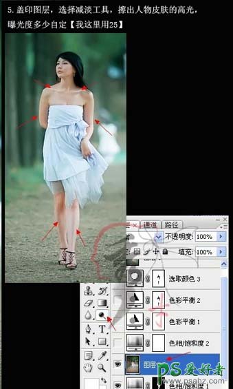 5、新建一个图层,按Ctrl + Alt + Shift + E 盖印图层,用减淡工具擦出人物的高光,曝光度自定。