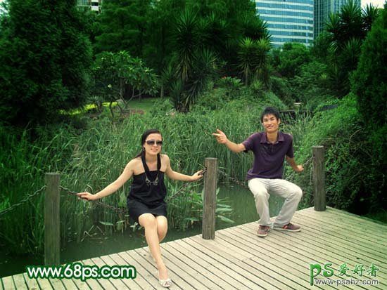 PS美女艺术照调色教程,photoshop调出墨绿色情侣艺术照,原图素材基本上也是绿色的不过色调有点灰。调色的时候可以把背景部分调成纯绿色,再适当给人物部分调整下颜色即可。 最终效果 原图 1、打开原图素材,把背景图层复制一层,图层混合模