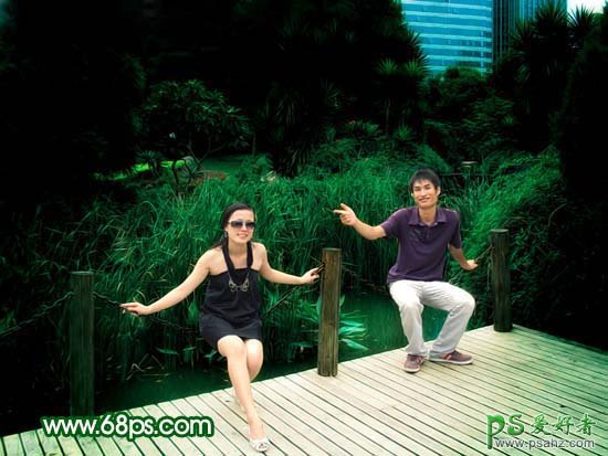 photoshop调出墨绿色情侣艺术照