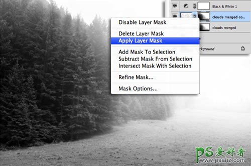 8、自己感觉满意后,复制层。右键单击复制的图层的图层蒙版,并选择“应用图层蒙版”。