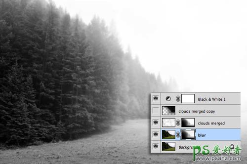 PS给树林风景照调出黑白迷雾效果