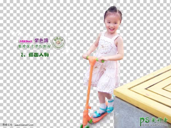PS照片调色教程实例,photoshop给儿童照片调出可爱的紫色调,本教程简单介绍人物照片的快速美化和调色。原图素材背景部分感觉比较杂乱,作者换上了一张比较漂亮的背景。调色基本上两步就可以了。可见人物调色并不需要多复杂,整体好看就可以了。