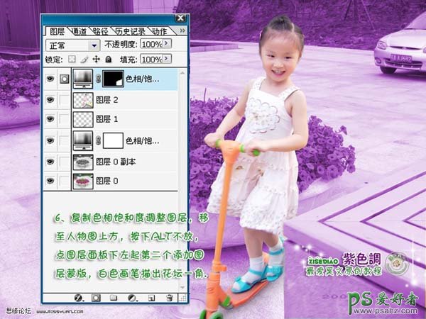 PS照片调色教程实例,photoshop给儿童照片调出可爱的紫色调,本教程简单介绍人物照片的快速美化和调色。原图素材背景部分感觉比较杂乱,作者换上了一张比较漂亮的背景。调色基本上两步就可以了。可见人物调色并不需要多复杂,整体好看就可以了。