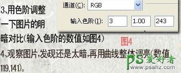 3、创建色阶调整图层,调整一些图片的明暗对比度,参数设置如下图。 4、观察图片,发现还是太暗,再创建曲线调整图层,调亮一点,数值:119/141。