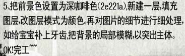 5、把前景色设置为深咖啡色:#2e221a,新建一层填充前景色,把图层混合模式改为“颜色”。再对图片的细节进行细处理,完成最终效果。