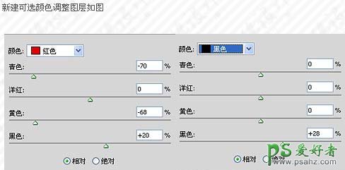 2、创建可选颜色调整图层,参数设置及效果如下图。