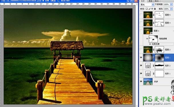 PS给漂亮的海景图片调出高对比度夕阳效果