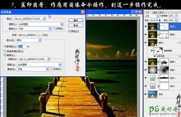 7、新建一个图层,盖印图层,选择菜单:图像 > 应用图像,参数设置如下图,确定后加上图层蒙版用黑色画笔擦掉一些不需要的部分,完成最终效果。