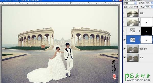 PS快速调出灰度艺术色彩少男少女婚纱艺术照