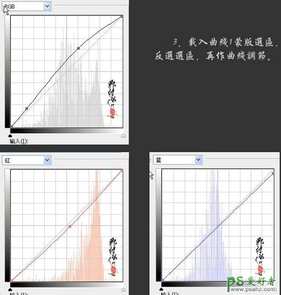 3、载入曲线1蒙版选区,按Ctrl + Shift + I 反选,然后再创建曲线调整图层,参数及效果如下图。